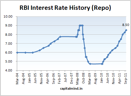 – Check the performance in a rising interest rate cycle, and a dropping one. For the record, here if the interest rate history in India: